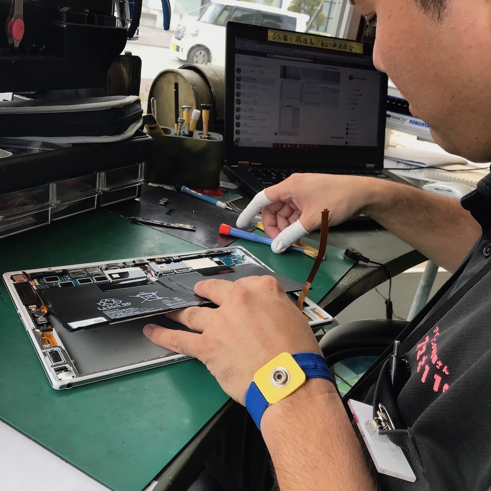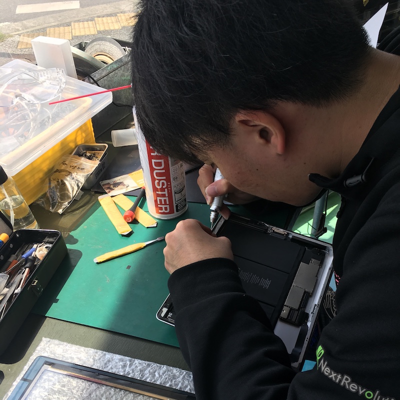 只今、翔さんがiPadの修理を行なっております♪