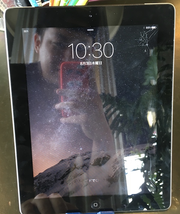 こちらのiPadのパネル上右部分が割れてました!