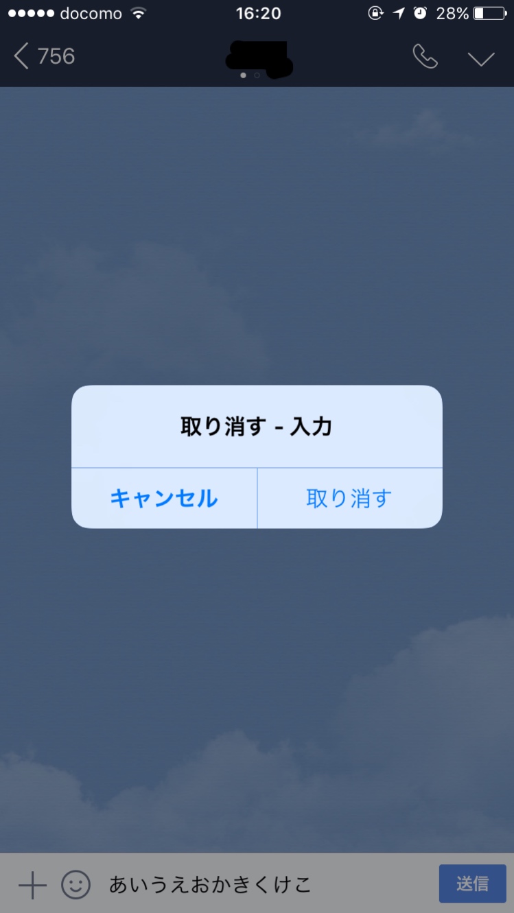 iphoneをシェイク!します。すると取り消し画面が出てくるので「取り消す」をクリック