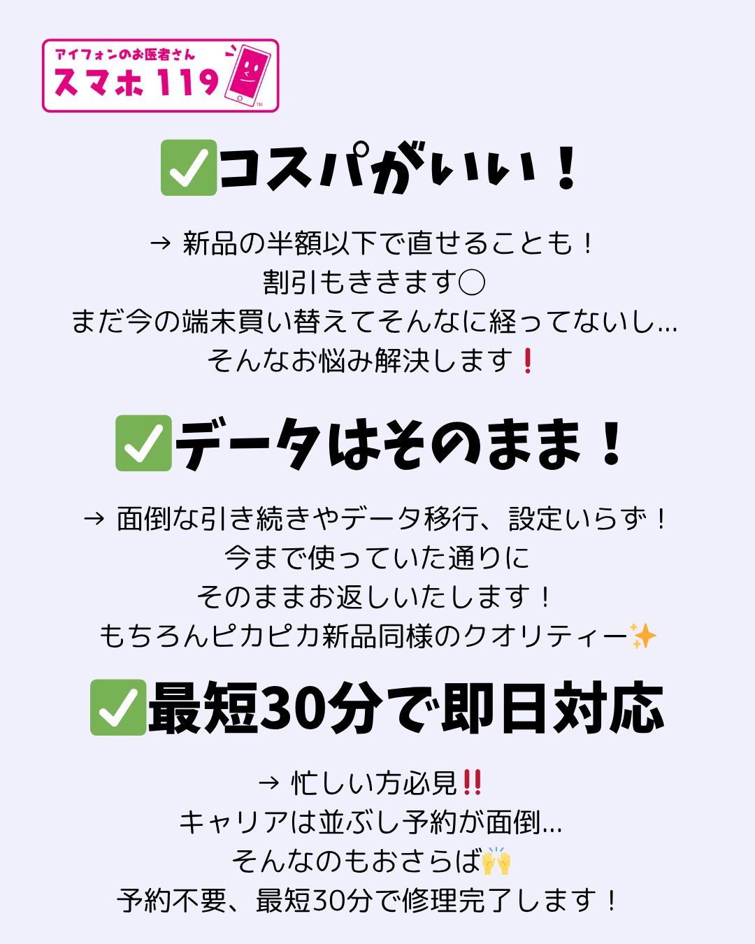 ⭐️スマホ119なら最短15分の即日修理