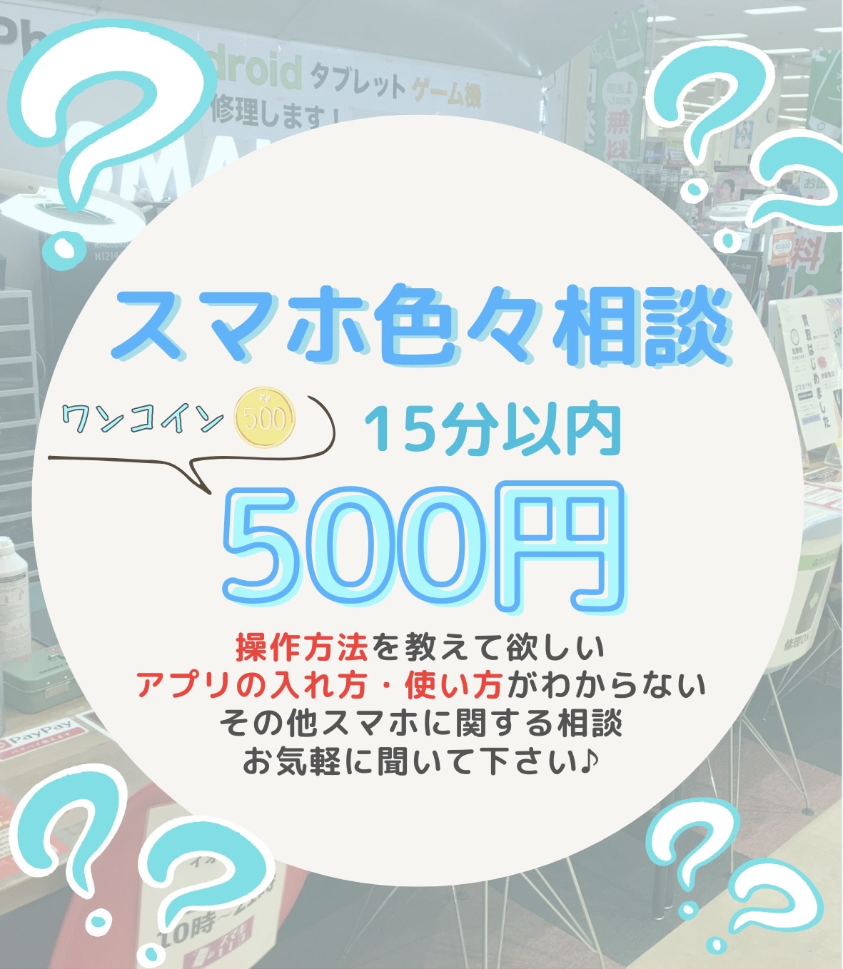 スマホに関する相談をワンコインで承ります(^^)/♡