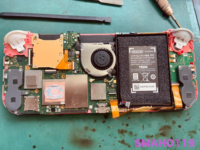 まずは画面を開けてバッテリーを外していきます