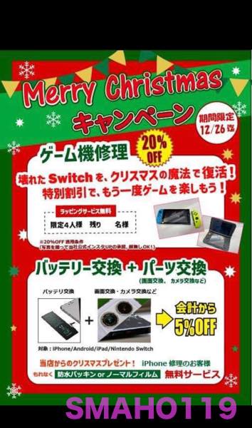 今回12月26日までにswitchを修理したお客様は修理費用が20%OFFになります
