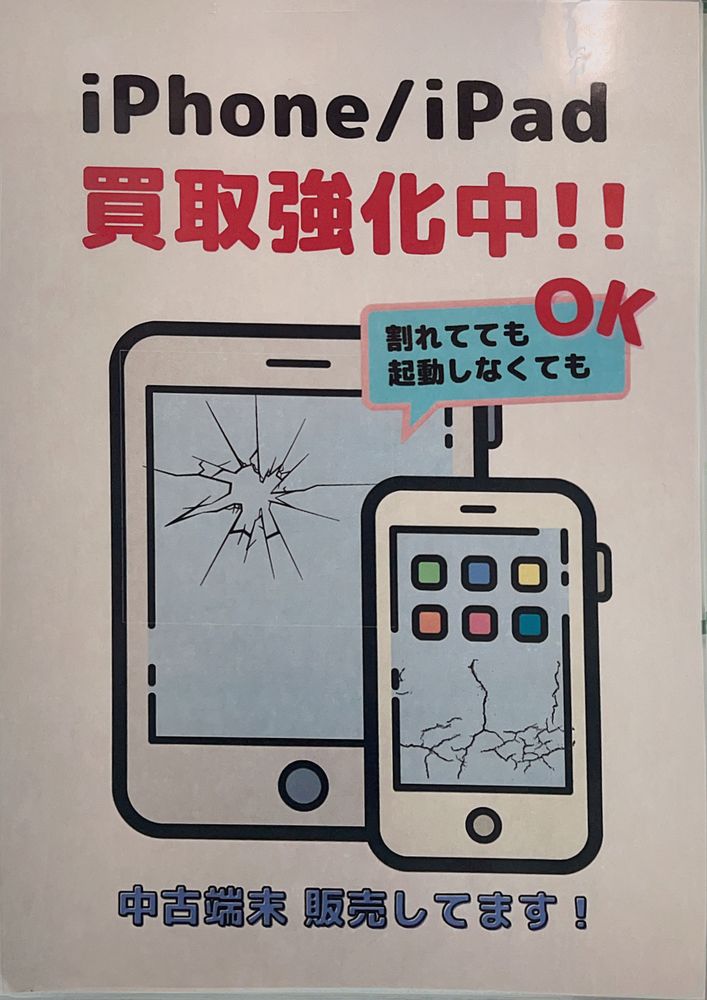 iPhone.iPadの買取も行っています。