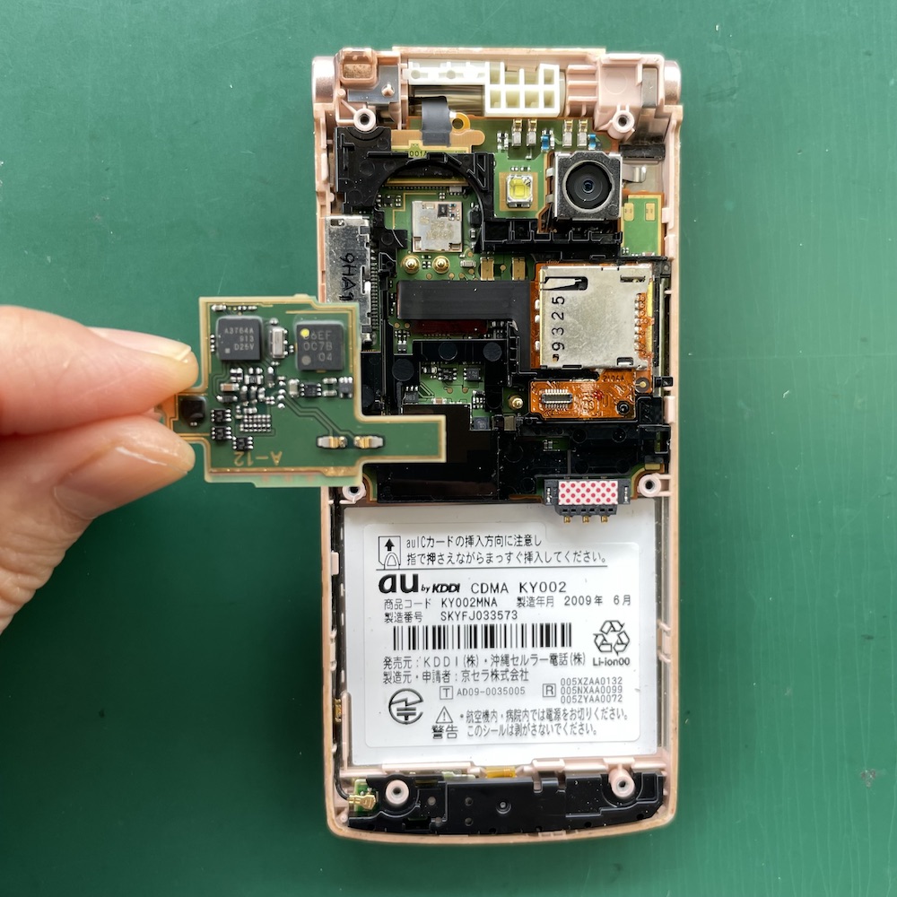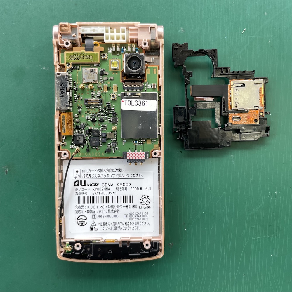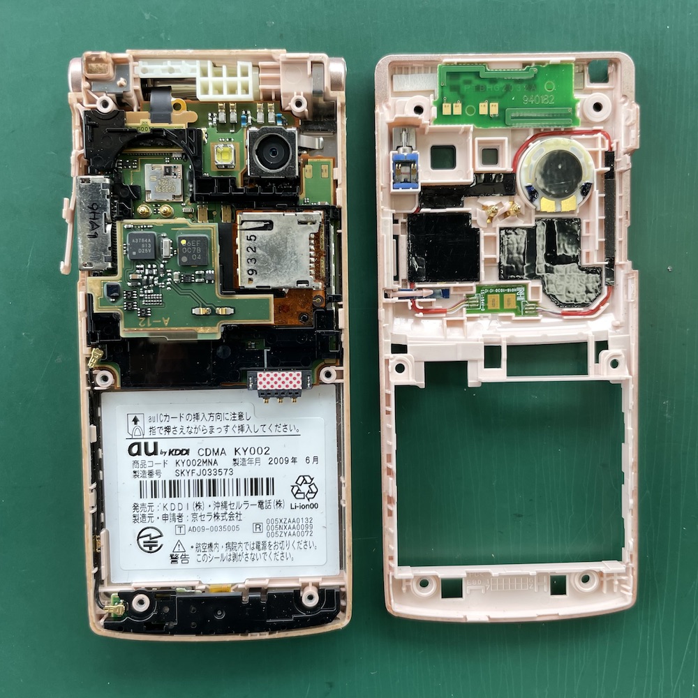 ガラケーの中にも部品が何層にも重なっています!