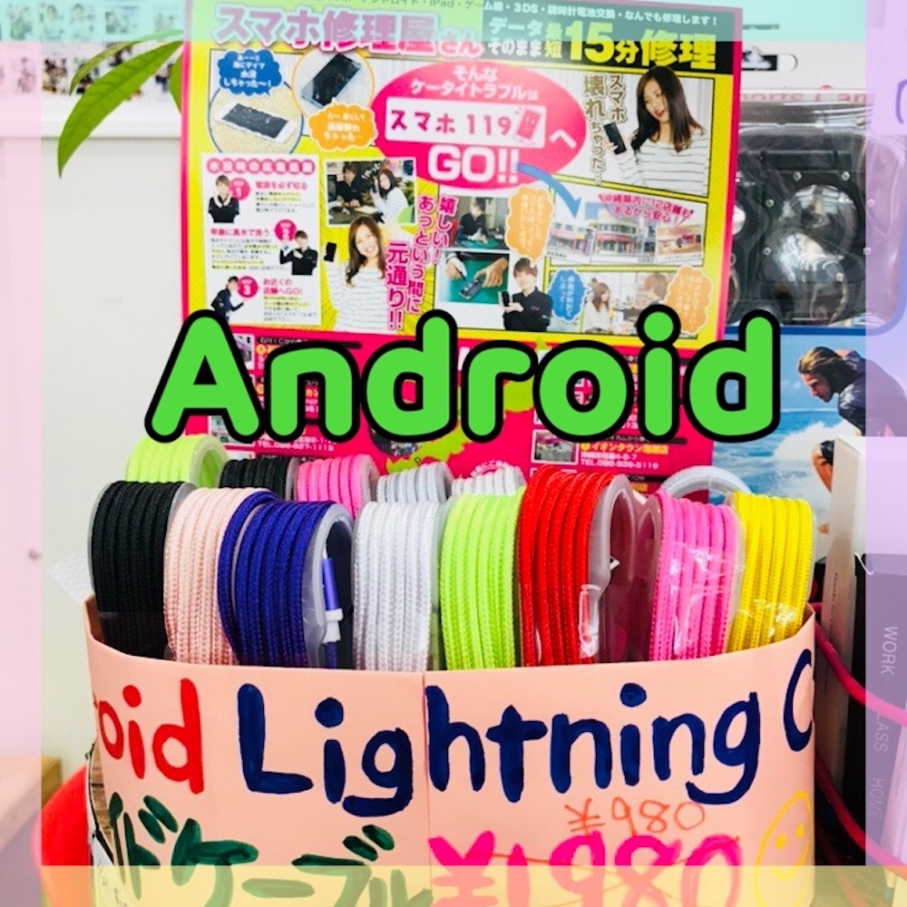 ↑↑Androidのケーブルなんですがカラフルで可愛いですよね(*'▽'*)