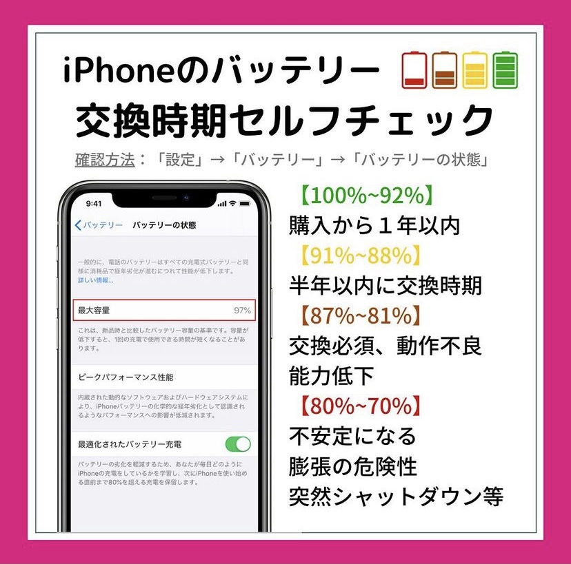 劣化が進むとバッテリー膨張だったり電源つかないなど症状あります