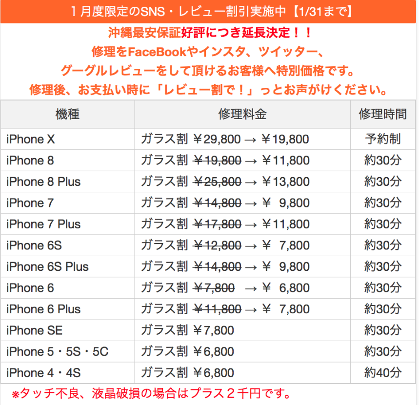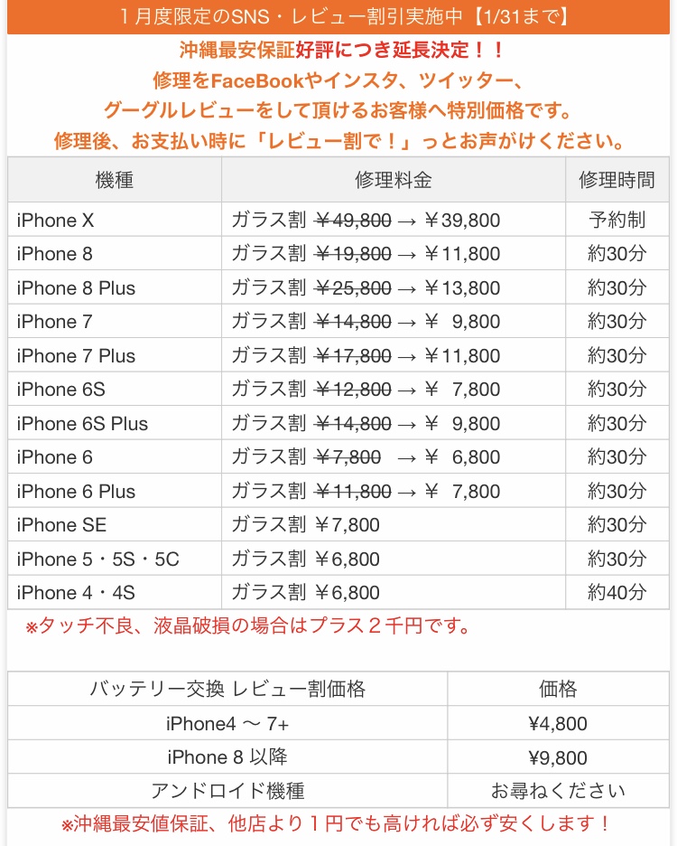書いてる通り、かなりお得に修理できます!!