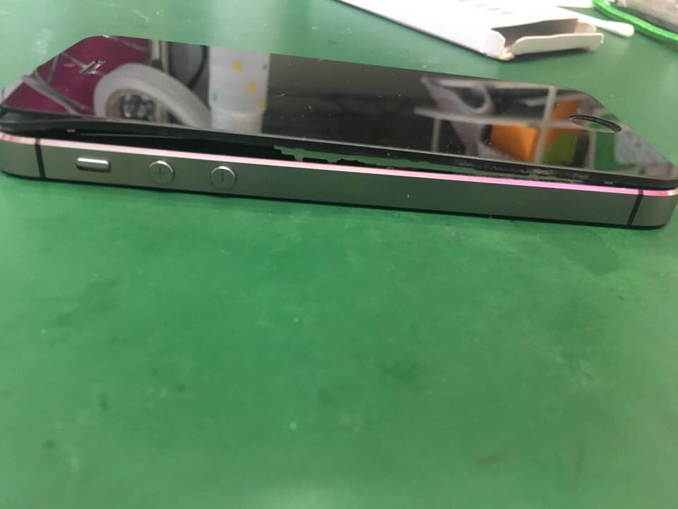 ほぼ粉々状態のiphoneです。こうなってくると、気をつけないと修理のときにも指を切ってしまいそうになります。