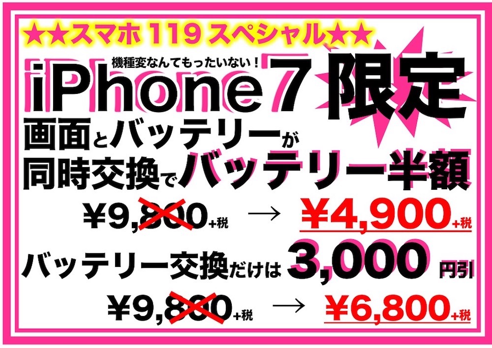 iPhone7バッテリー交換キャンペーンですよ!!!!