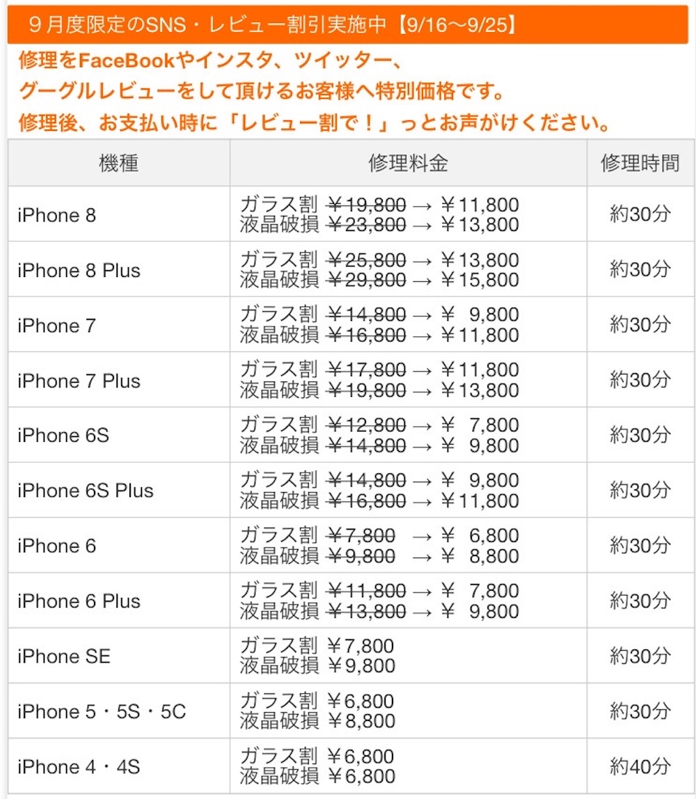 ところで、スマホ119では9月25日までレビュー割実施中ですよ〜!