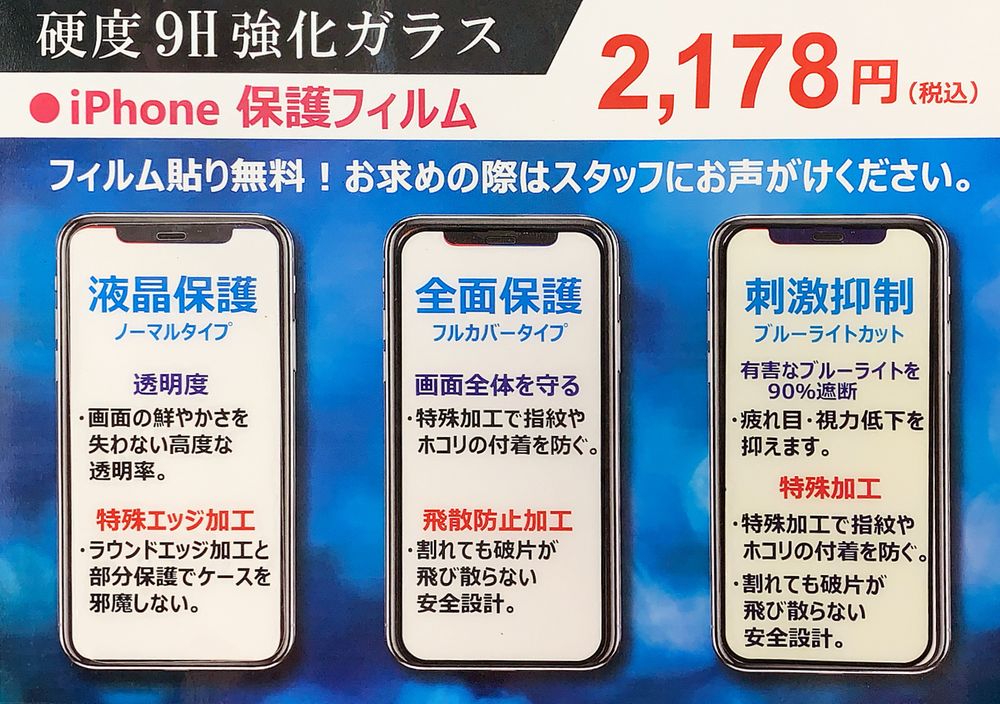 iPhone用保護ガラスフィルム