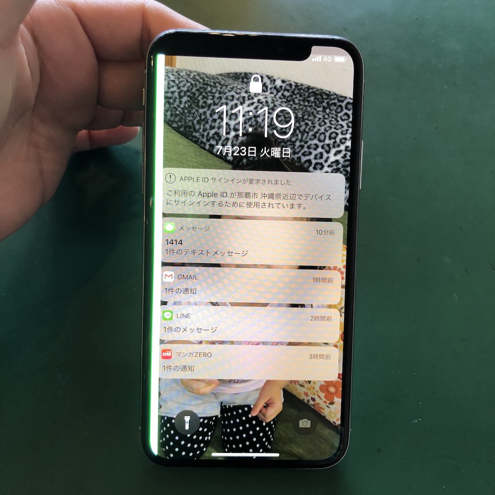 グリーンラインが液晶に出始めて、タッチ操作もできません。