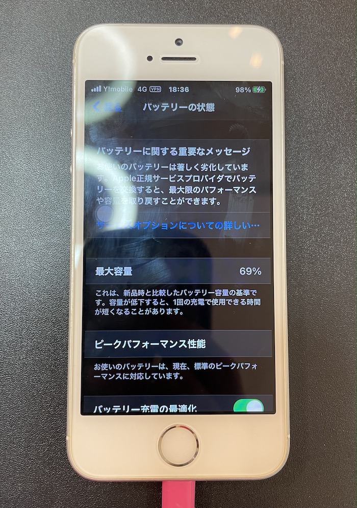 「iPhoneに内蔵されているバッテリーがどのような状態か」をチェックします