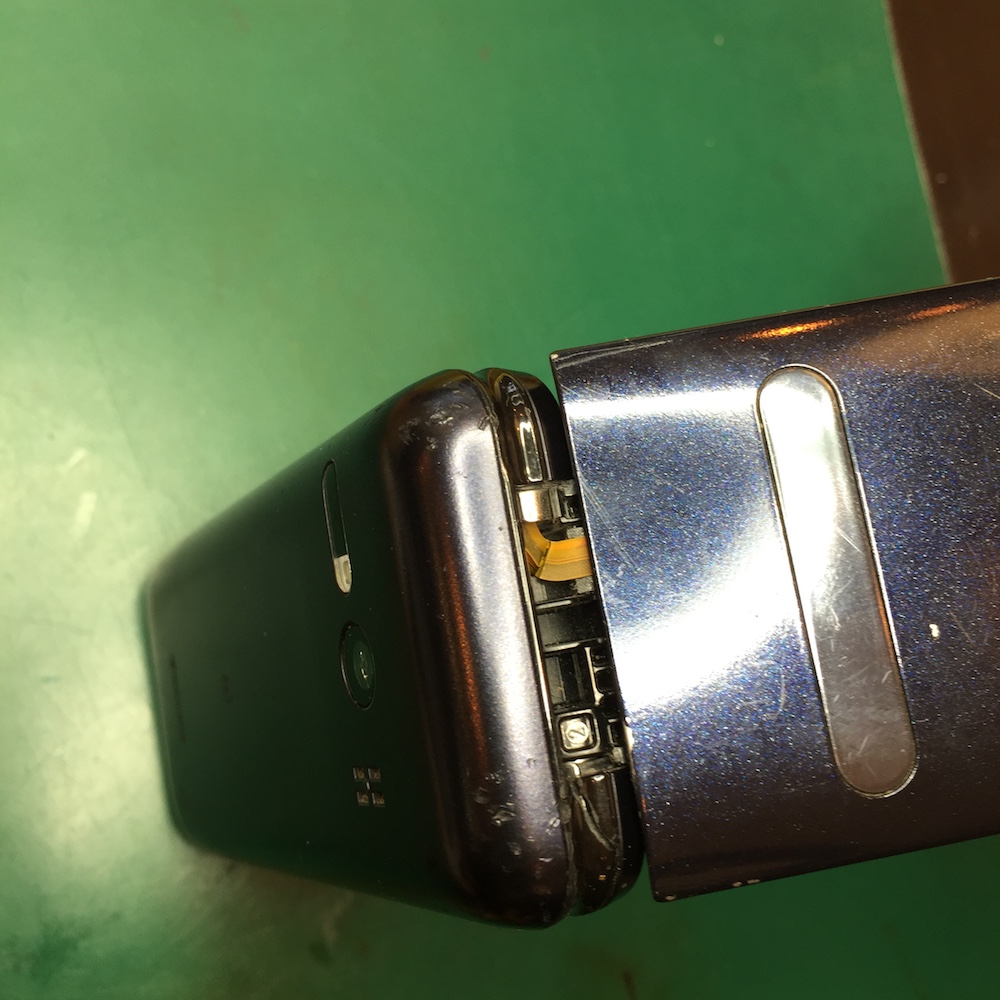 本日は液晶の線がちぎれてしまったガラケー。電話帳などのデータが欲しいということで、お預かりしました。