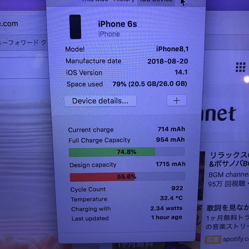 今朝バッテリーを交換したiPhone6sは最大容量が50%台まで落ちてしまっていました。