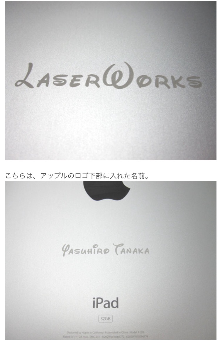 ▲アイパッドなんですが、こんな風にメッセージを入れることができるんです♪