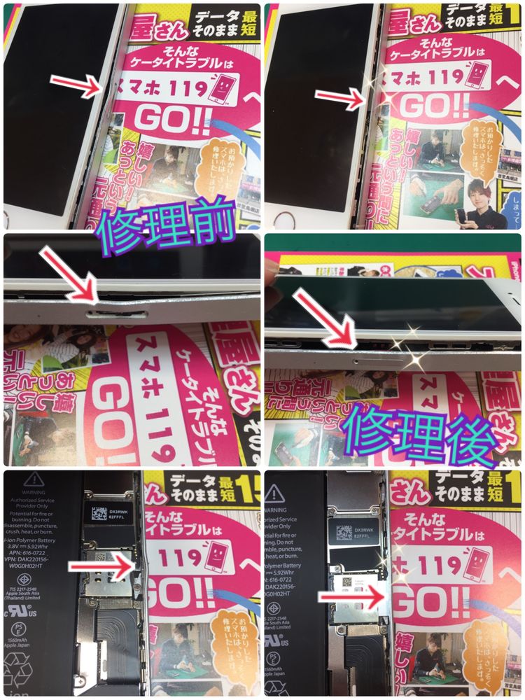 今日は5s・6のバッテリー交換や6sの画面交換の修理をしています。