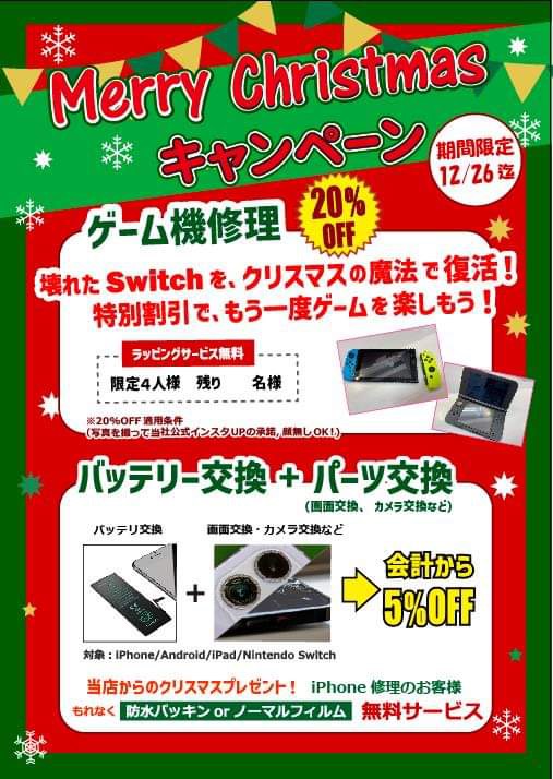 ゲーム機修理20%OFFキャンペーン