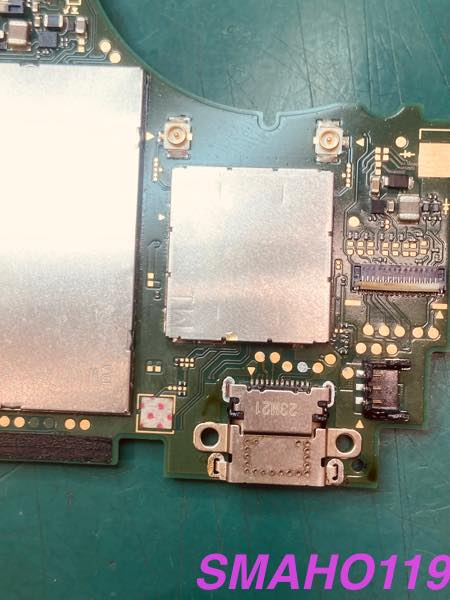 Switch liteの充電口は基盤にハンダでつけられています。
