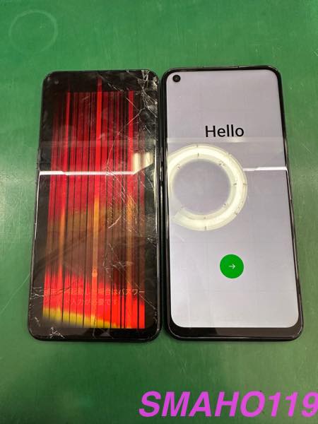 画面交換で無事修理完了です 左が取り外した画面です