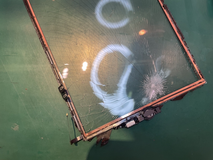 まだガラスの破片がついているので