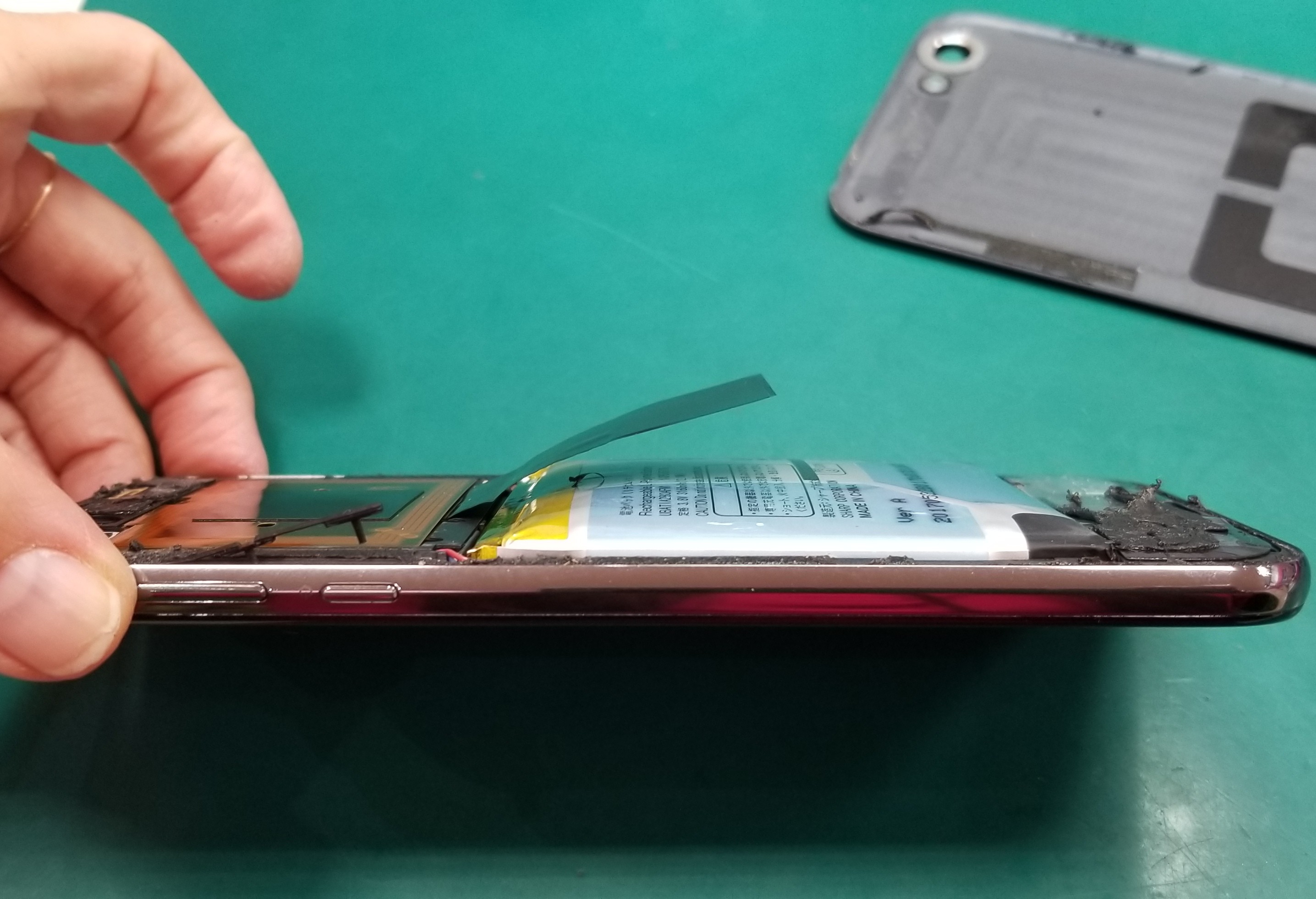 先月お預かり修理をしております AQUOS R のバッテリー交換の様子をお届けします♪