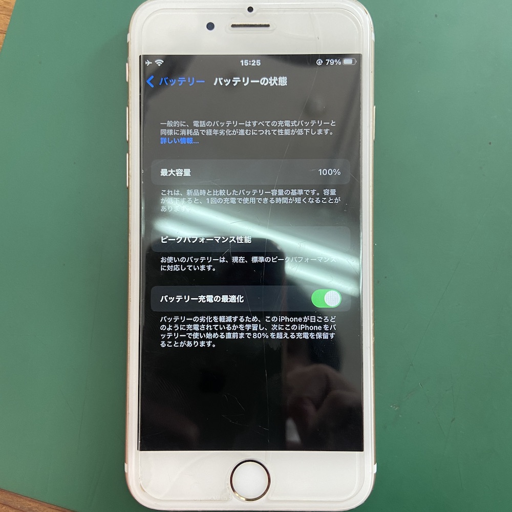 この場合も、データそのままで新品のバッテリーに変えると100%に表示されますのでまだまだ使用可能です!