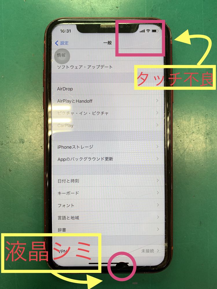 このiPhoneフォンは画面の右上の反応が効かないのと画面の下にシミが出てしまっていますね!!