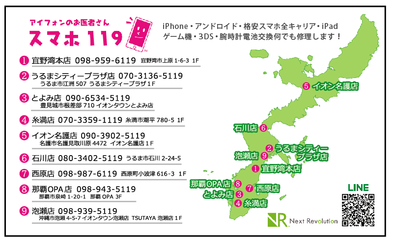 | ◆ 那覇空港から一番近いスマホ修理店 ◆ (営業時間 10:00~19:00) ♪ データそのまま30分修理 ♪ |