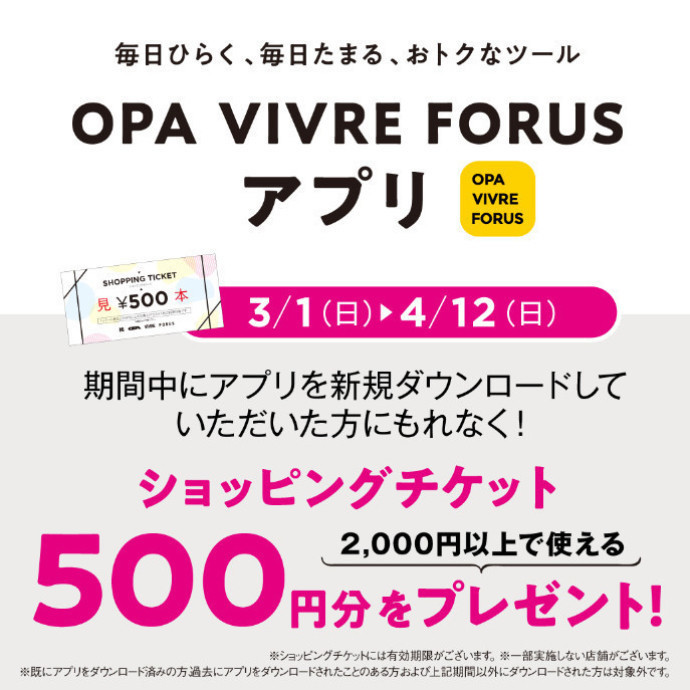 オーパ公式アプリ☆ショッピングチケットプレゼントキャンペーンです!!
