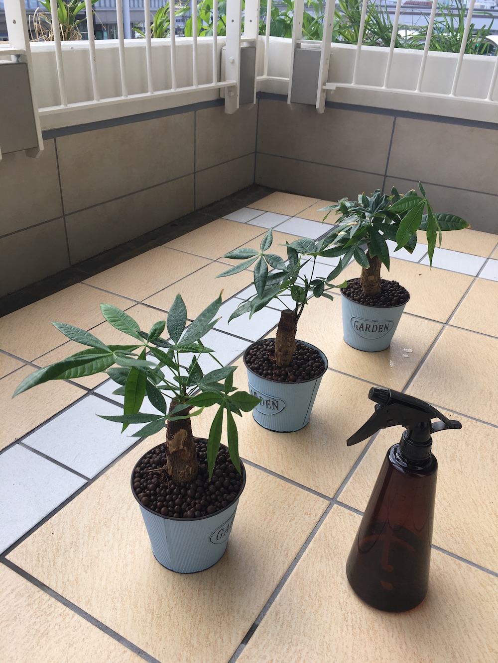 そんなテラスで観葉植物を日向ぼっこ中です