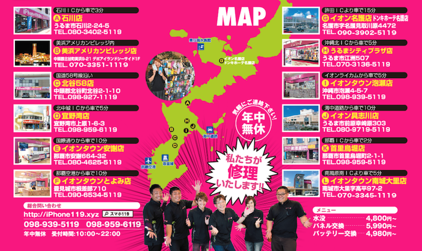 スマホ119安謝店:朝10時〜21時まで営業・年中無休