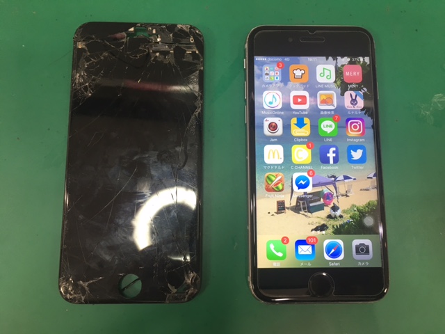 こんなにバッキバキの画面も右の携帯のようにピカピカに直します♪