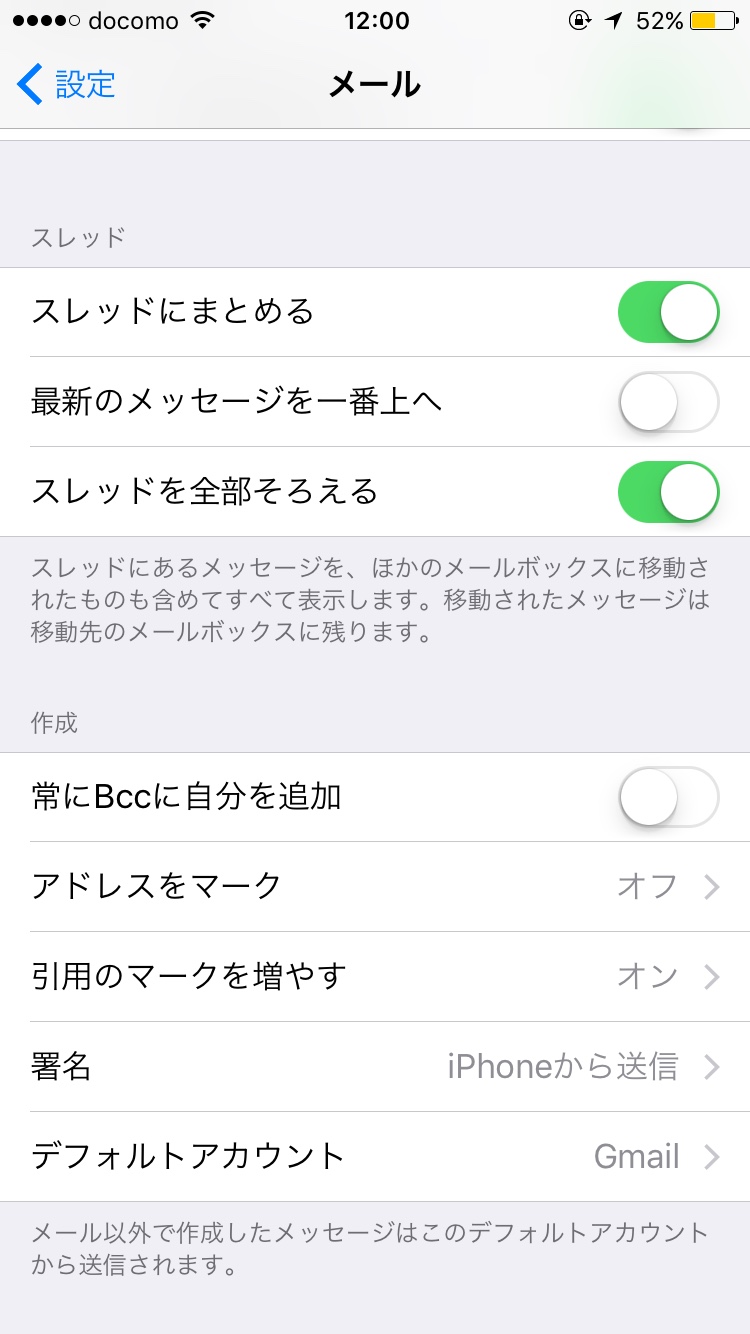ここでiPhoneのメールの署名を編集します。