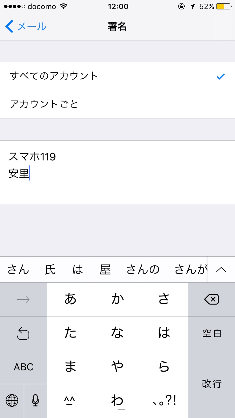 再度メールアプリを開き署名が変更されているか見てみました!