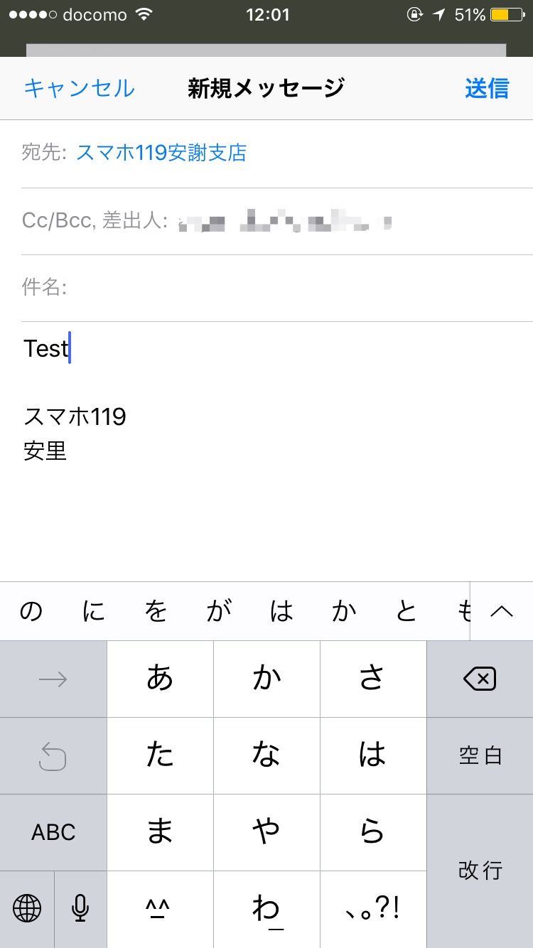 ちなみにiPhoneでメールを送ろうとした時に