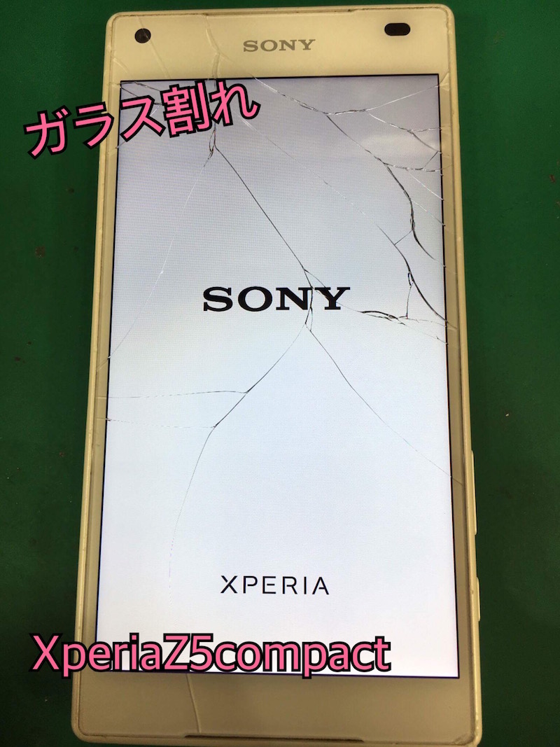 ↑XperiaZ5compactのガラス割れ・・。バキバキ
