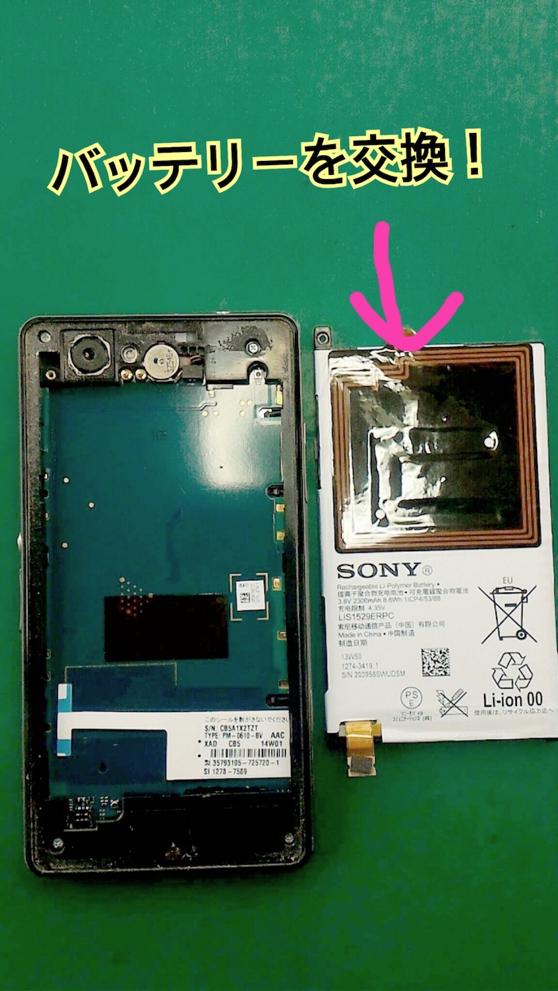 修理内容はXperiaZ3のバッテリー交換