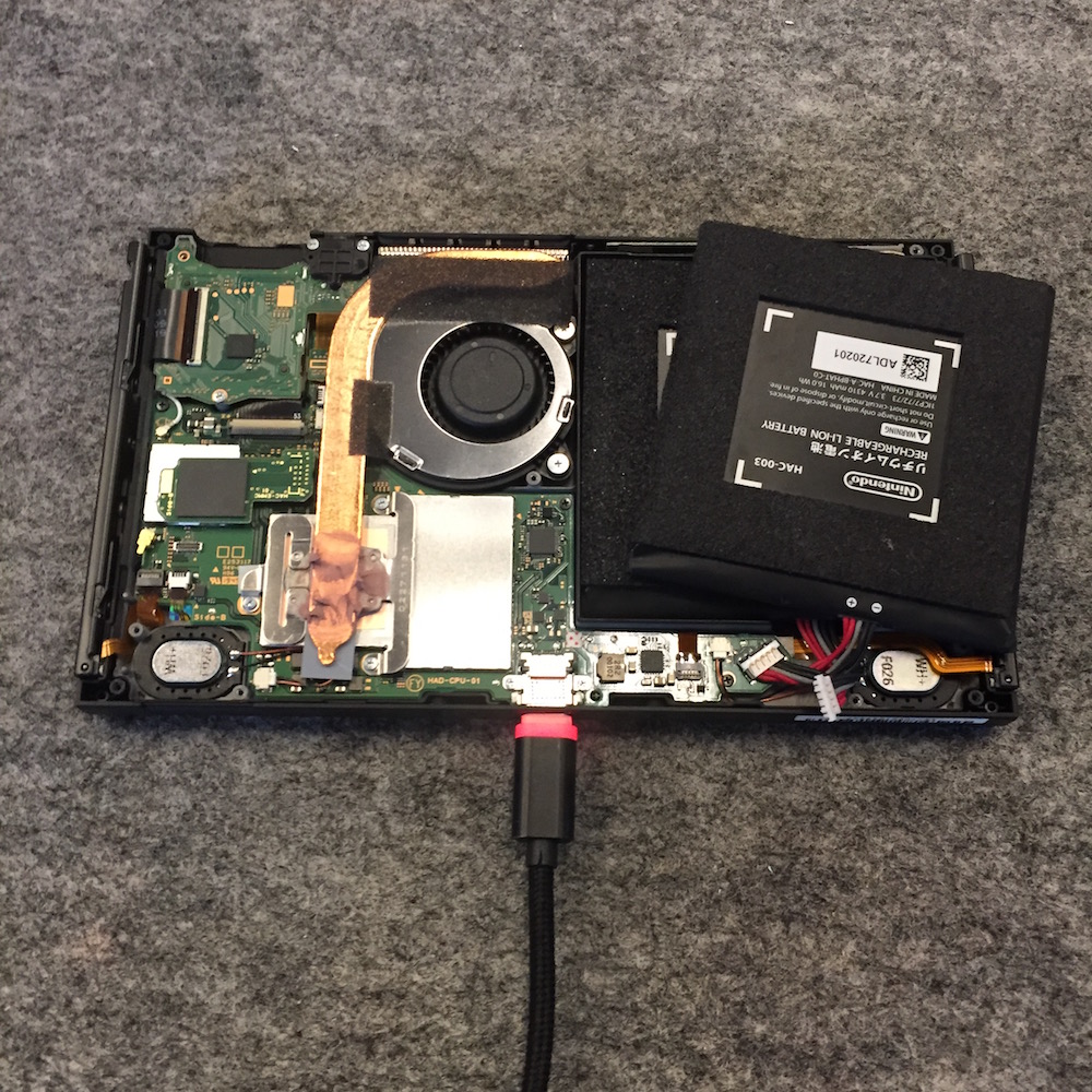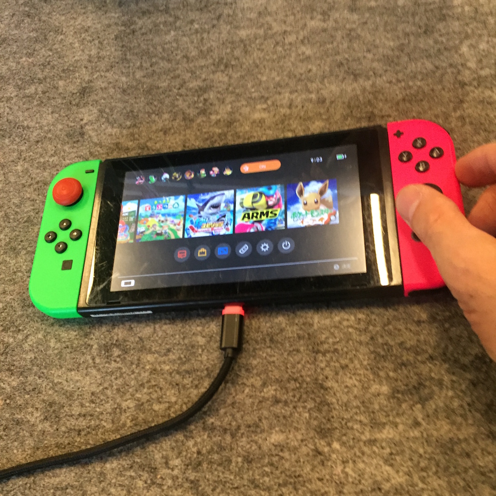 充電ケーブルを接続し、起動を試みますが反応しません。