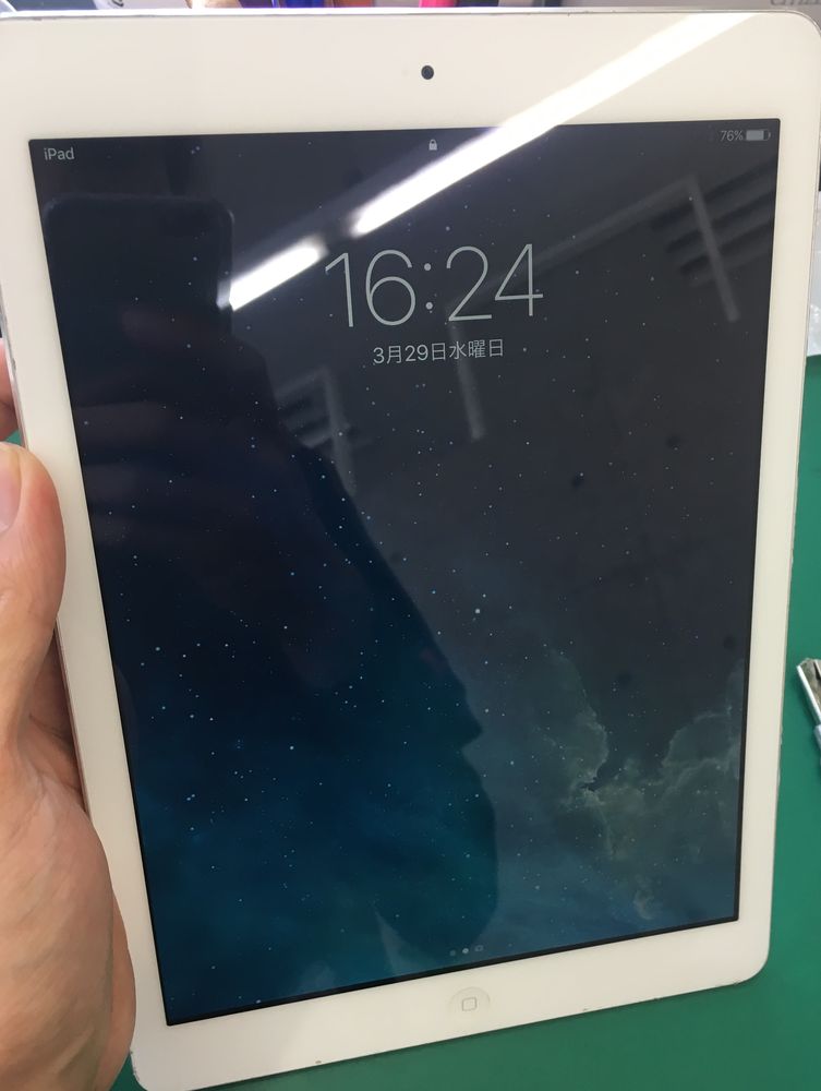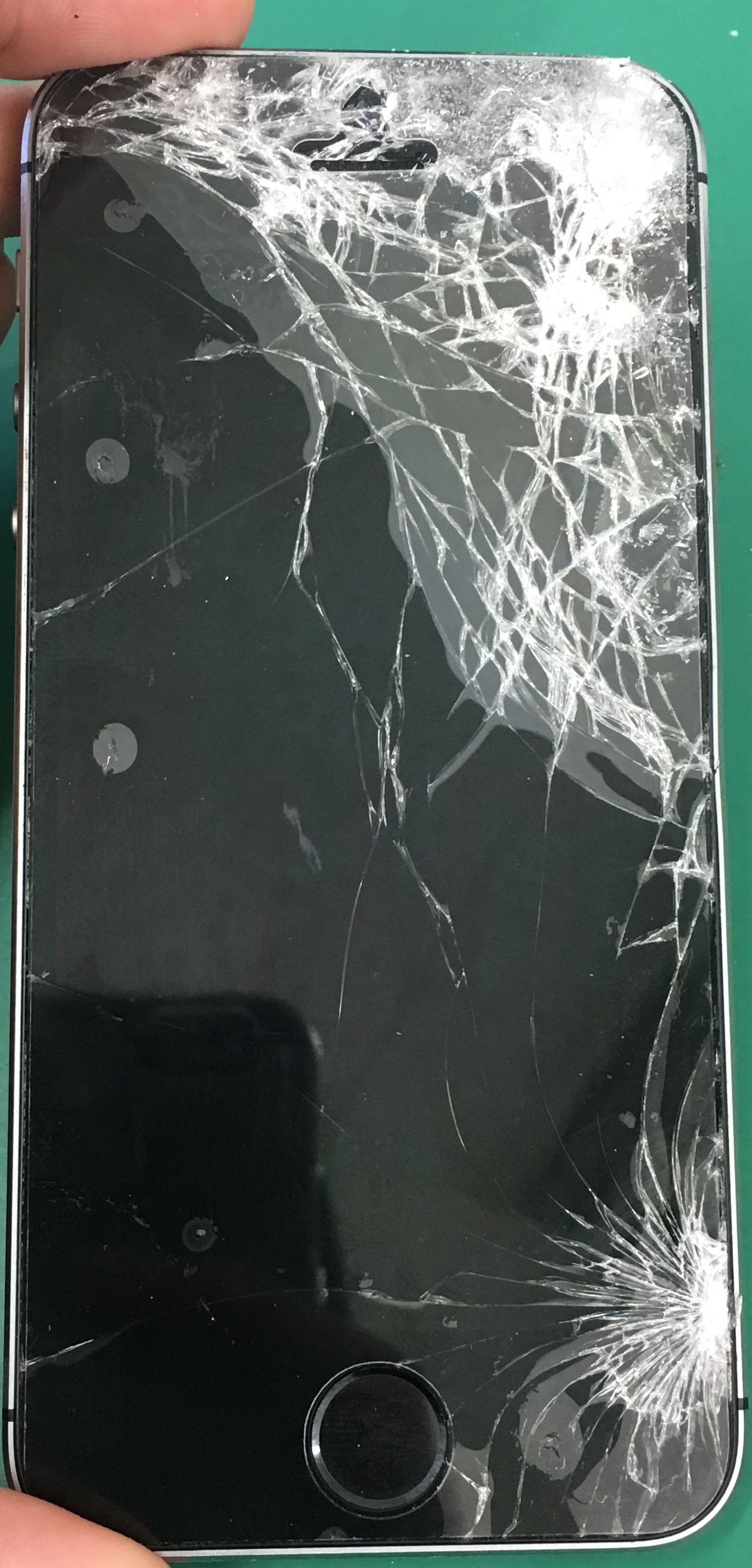 ↑iPhone6のガラス割れ修理。パネル上部分だけが割れてるね・・。