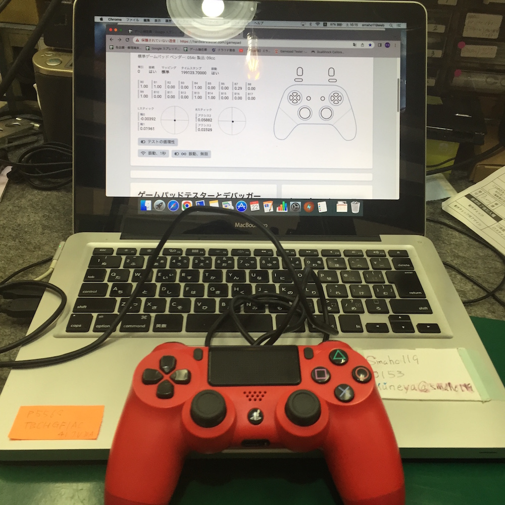 テスターでの点検を進めて、左側のアナログスティック故障と判明いたしました。