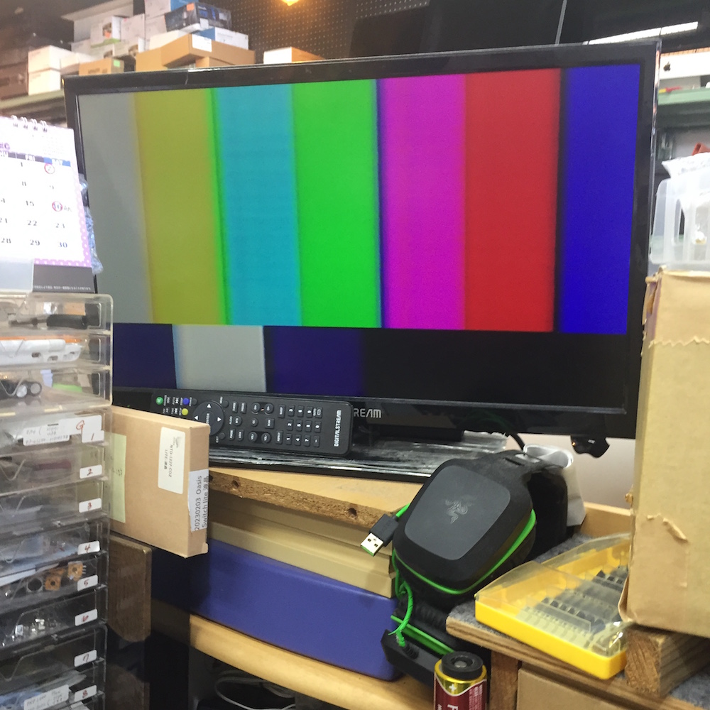 キャビネットを分解し各部の点検で、液晶の故障と判明いたしました。