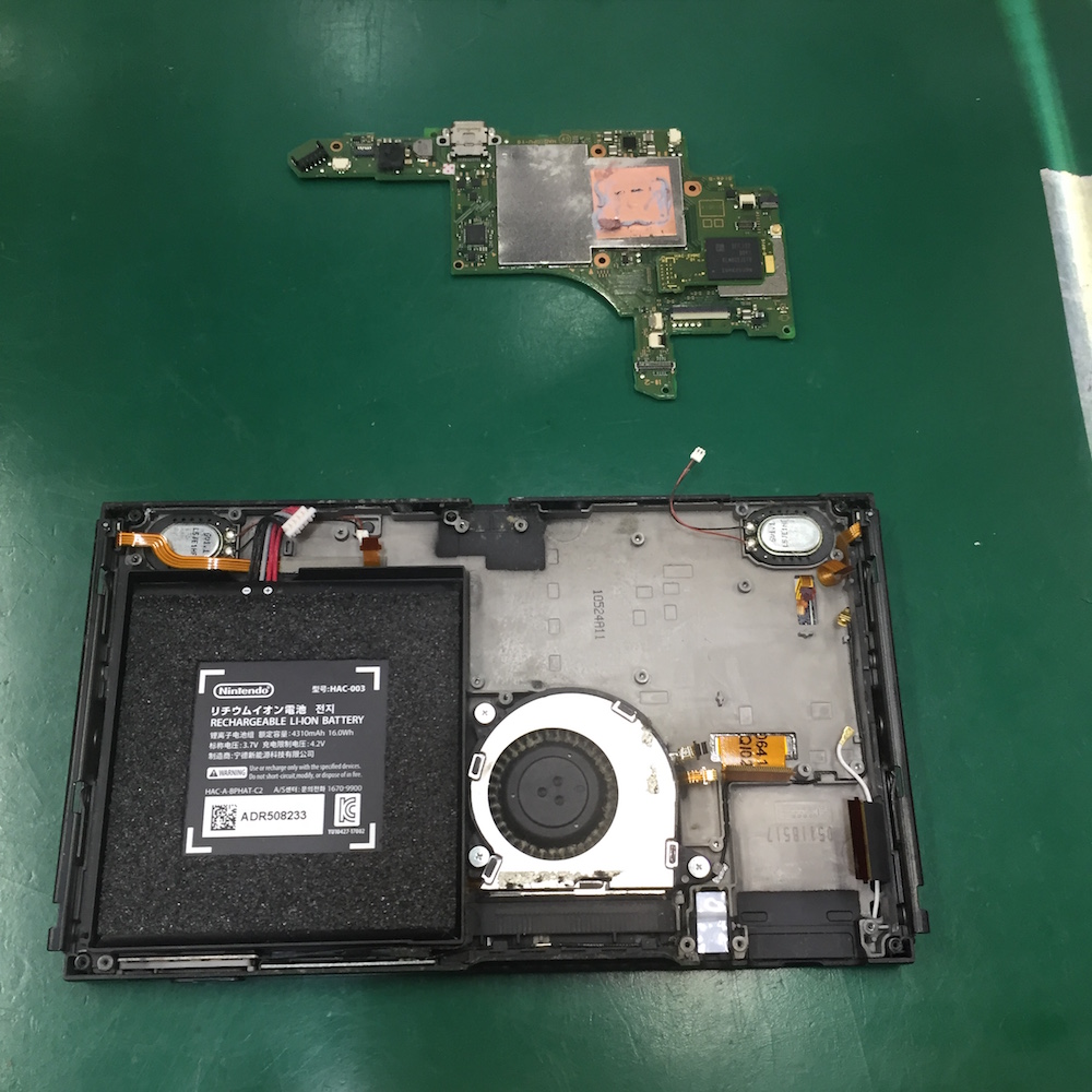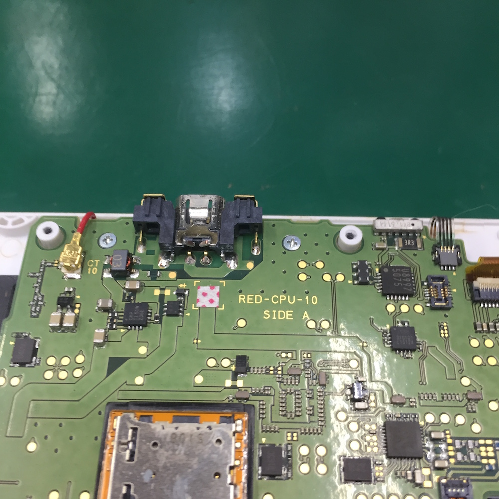 コネクターや基盤の細部の点検で、充電口の半田付け亀裂が見つかりました。