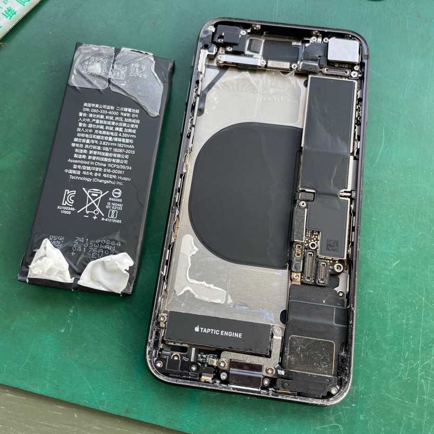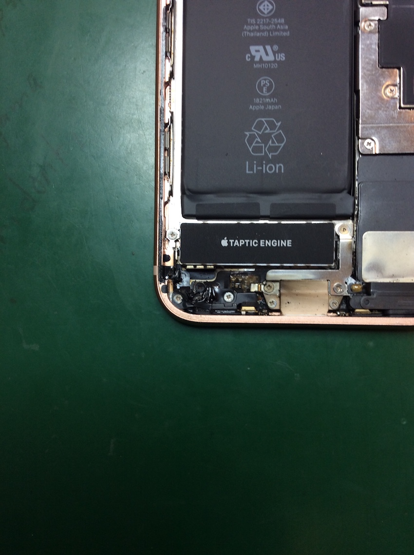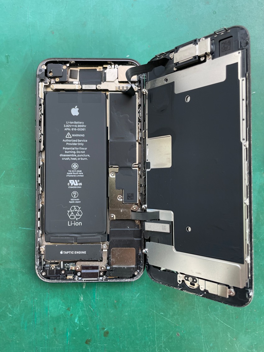 基盤やバッテリーなどが見えますね、iPhoneを使うにあたって大事なパーツです!