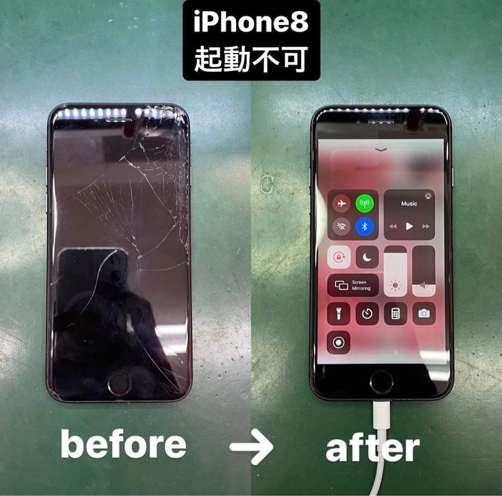 iPhone8 画面割れ、起動しない