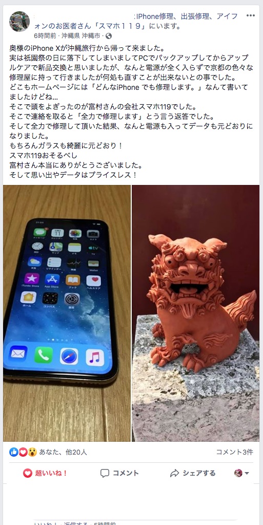 そんな中、沖縄のスマホ119に修理依頼をだしていただいて