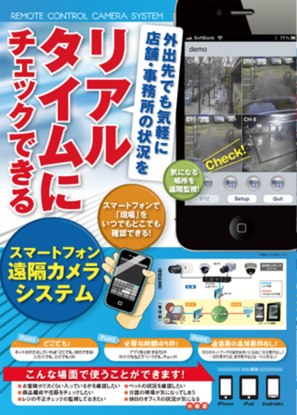 実際のカメラでスマホの画面で映像を確認できます。